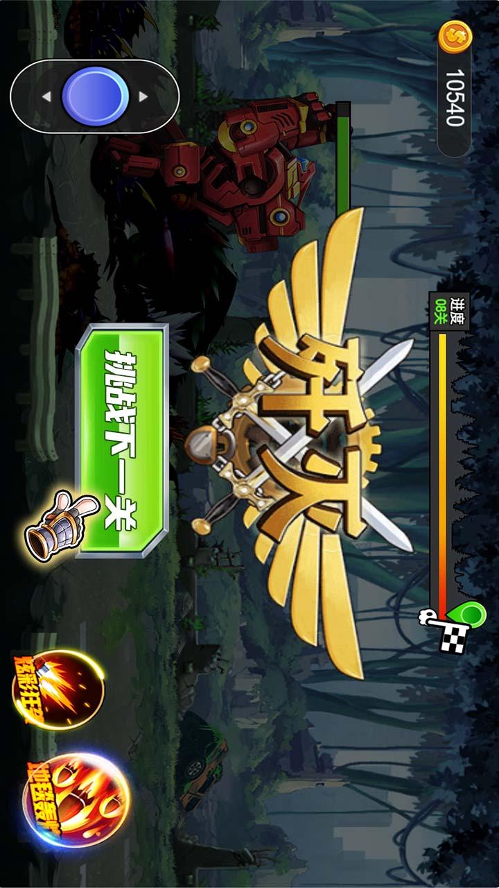 机甲猎手是一款机甲射击游戏,玩家操控机甲,消灭沿途的一些敌人。屏幕左下角控制机甲武器的设计方向,右边可以释放技能,冲冲冲!