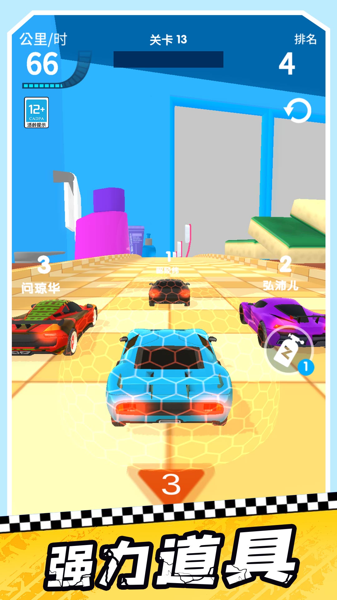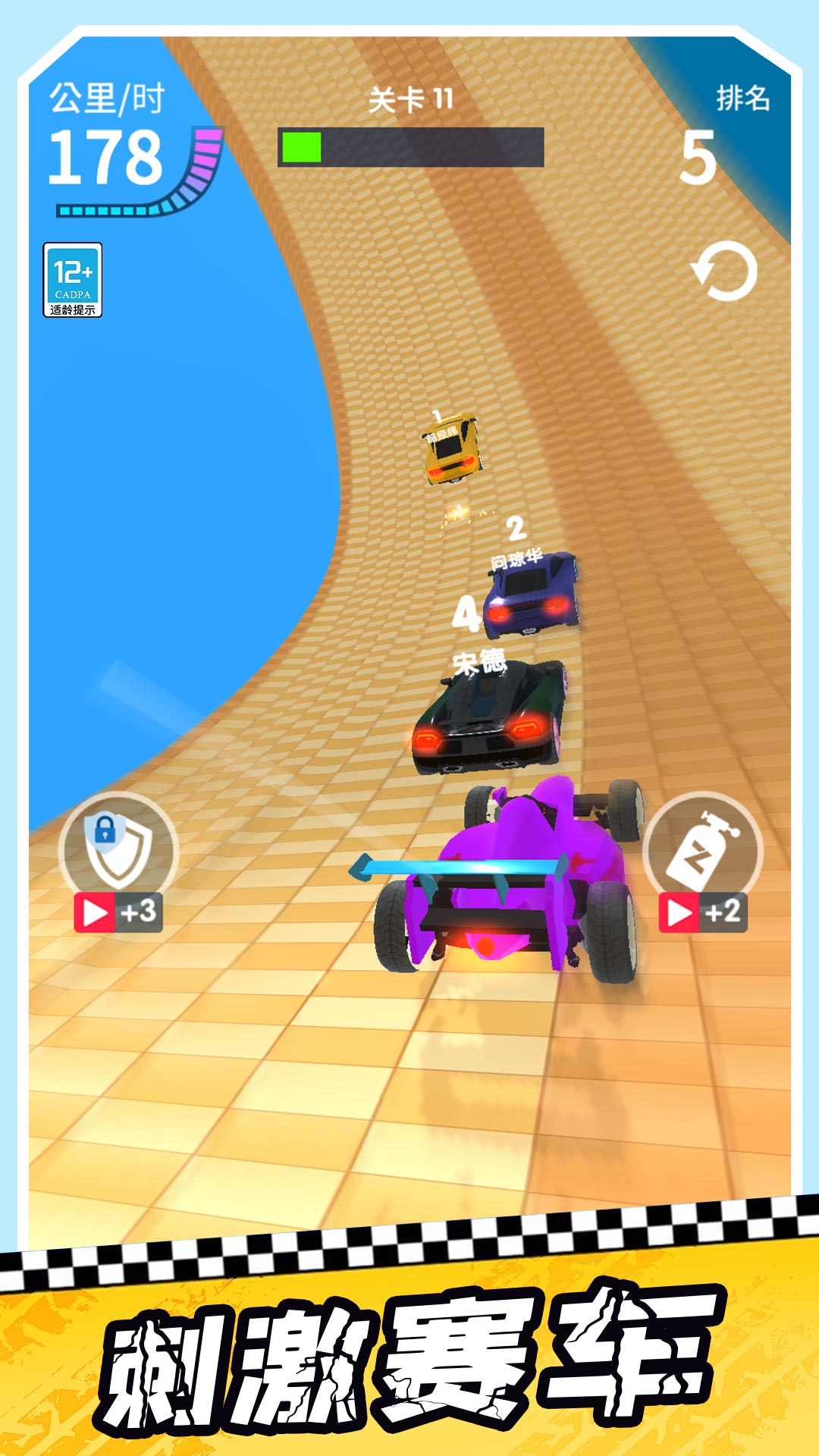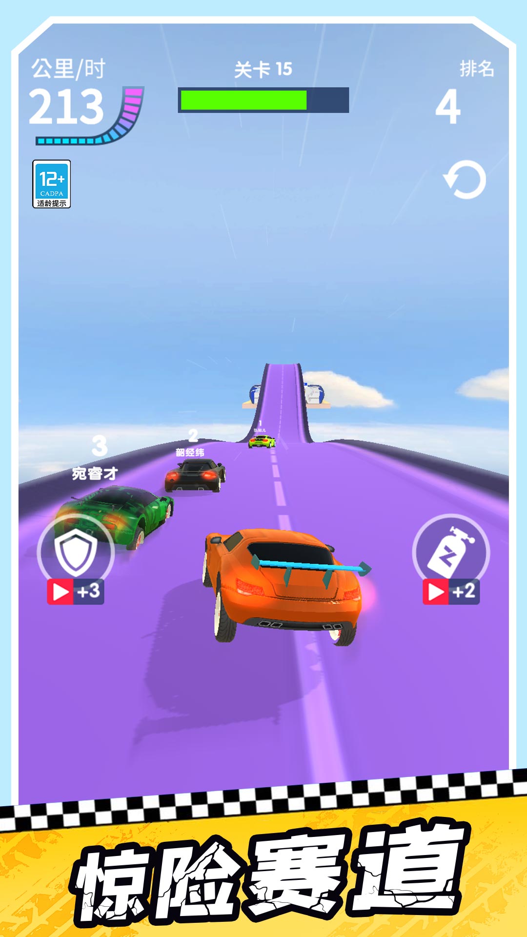 在游戏当中,你可以操控你的车辆在赛道中左右移动,躲避赛道中的障碍物,在关键时刻冲刺加速,超越其他车辆,与其他玩家一较高下!区别于其他传统的赛车道,游戏中的赛车都设置在高空之上,你在紧张比赛的过程之余,还可以欣赏在高空视角的美丽风景,浙江带给你与众不同的游戏视觉体验!当然在游戏赛道中,为了给你增加竞速体验,感受刺激的赛道竞技,游戏为你设置了不同的障碍设施,你需要全神贯注,避免撞上,同时还有超强道具,这些道具都可以帮助你更快更轻易地获得比赛地胜利!