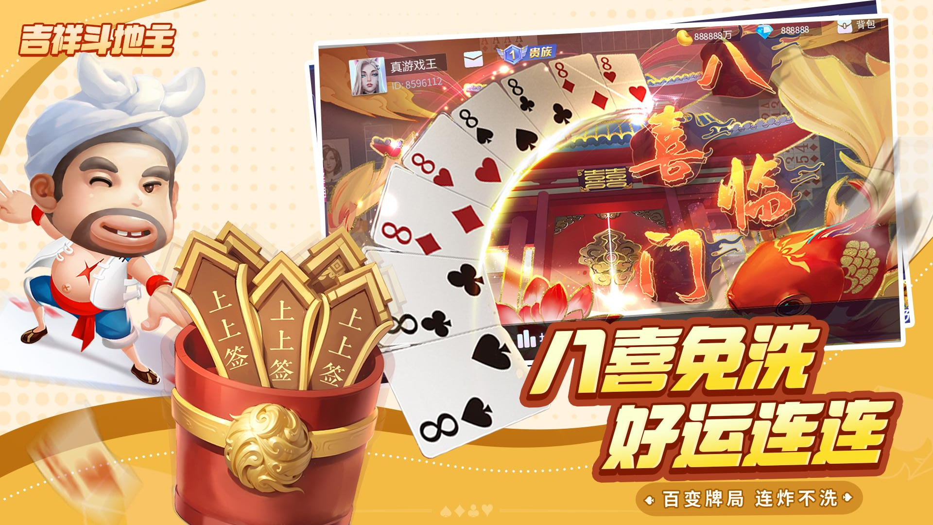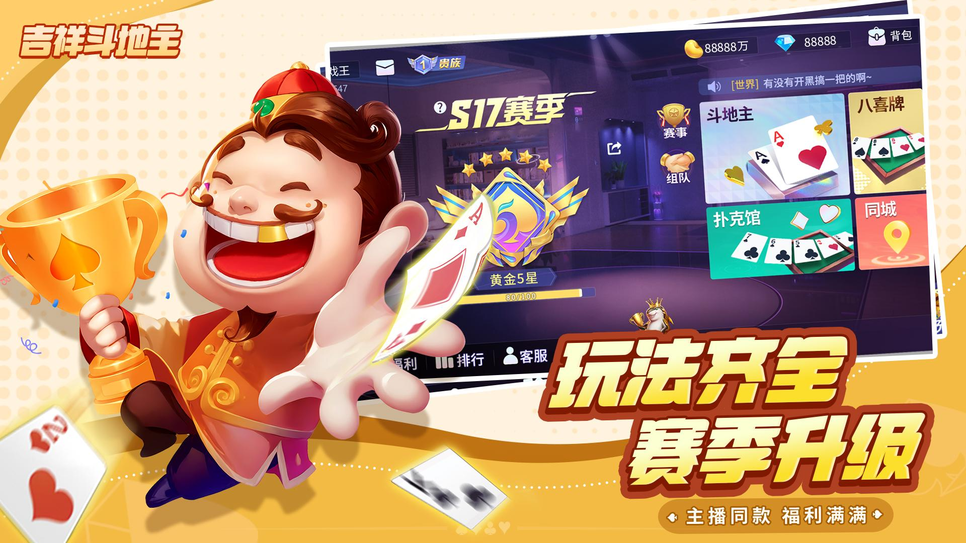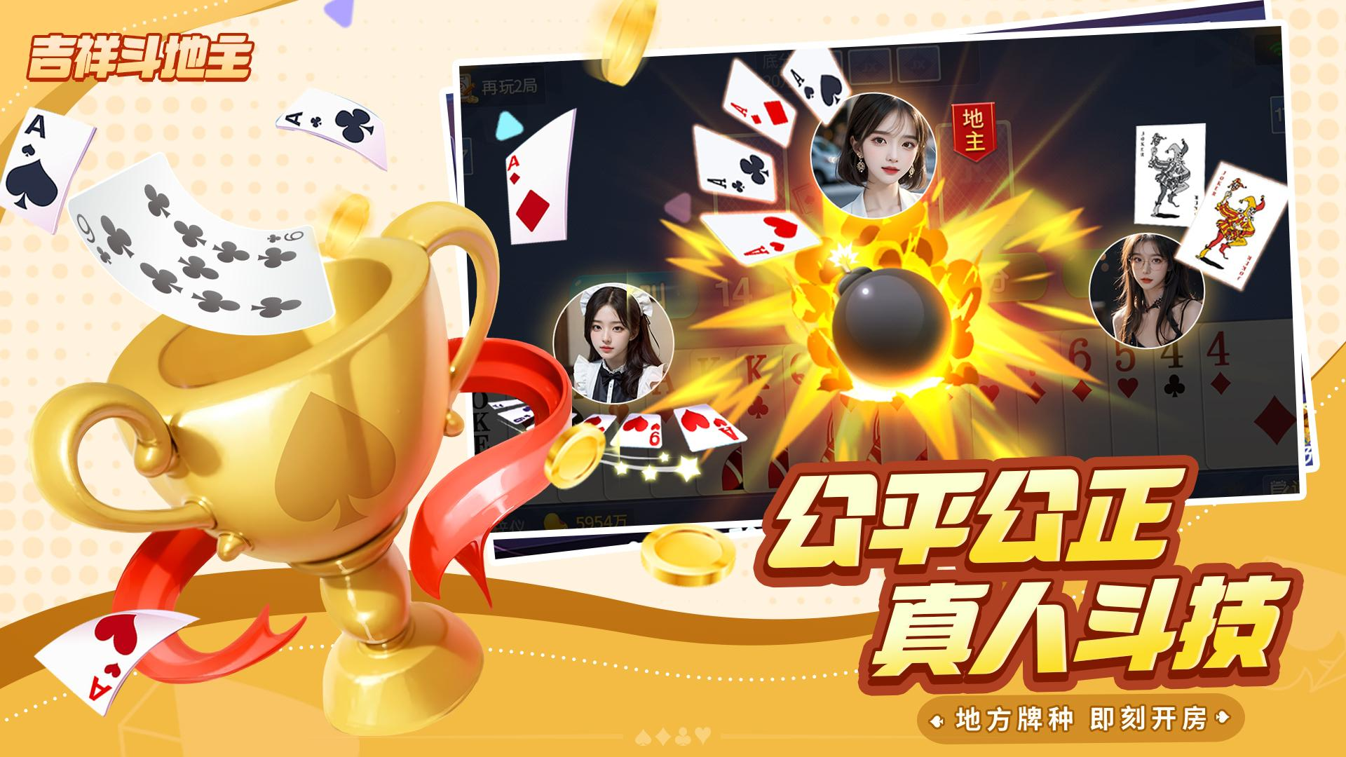 主播推荐,网红大V全在线!热爱斗地主的邻居朋友同事天天也都在玩《吉祥棋牌斗地主》!传统永留存,创新不止步!免洗连炸超刺激!全国牌友汇聚,全真人齐打牌!扑克爱好玩这款就够了!比手气更比牌技,局局翻倍金豆爆仓,八喜特效沉浸爽玩,超过瘾超开心!