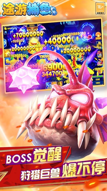 全新版本玩法多样!海量金币轻松捕鱼! 【神兽传说】炮弹发射,捕获大鱼,超级神兽携带海量激光,击败大BOSS,创造捕鱼传奇!争做捕鱼王者! 【刺激弹头】炮声一响,奖励丰厚!玩的就是爆机!超好玩的捕鱼游戏,争做捕鱼小能手! 【万人在线】万人同台竞技,正版街机,随时体验炸到金币爆屏的畅快感! 【超多福利】众多玩法不重样,金猪降福、任务系统、成长奖励、幸运转盘等超多玩法等你体验,多重福利嗨不停。独特的翅膀和炮台皮肤帮您在捕鱼的世界更进一步!