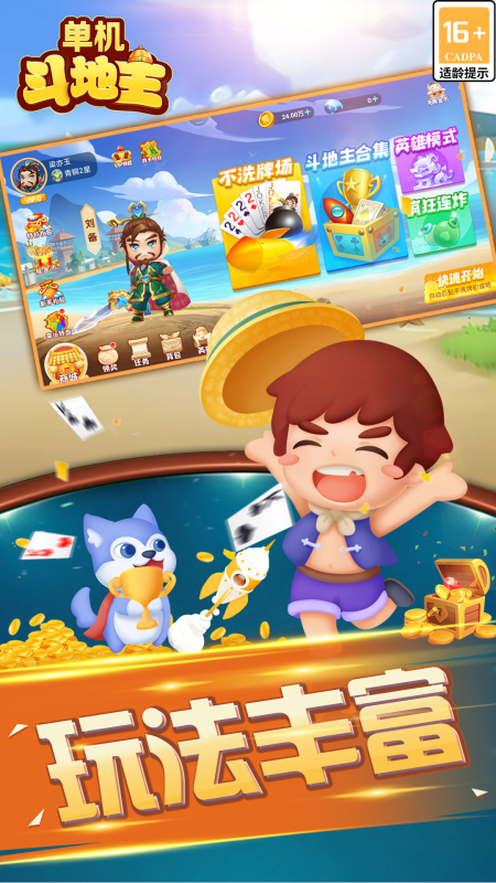 【玩法丰富,经典之作】 经典玩法,不洗牌玩法,连炸玩法,休闲畅玩,你想要的应有尽有! 【赛事竞技,专业公平】 专业大师赛,云集高手,公平竞技,打造最专业的斗地主品牌赛事! 【画质精美,炫酷特效】 匠心制作,布局用心,多个角色免费送,炫酷出场,随时秀出自我! 【奖励丰富,疯狂赠送】 回馈玩家,起手好牌,超高倍率,无限金币等你领,轻轻松松赢大奖!