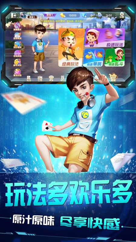 〓〓〓游戏介绍〓〓〓 原汁原味玩法多样,上万好友挚爱之选,百万用户游戏PK,画面精美特效绚丽,完美支持真人竞技,高手来战! 画面:设计优雅漂亮,赏心悦目好心情! 操作:简单易懂,智能选取,一键开始,秒速安装,网络顺畅,指尖流畅每一秒 。 玩法:欢乐经典场、刺激极速场、心跳单挑场、激情乱斗场!玩出新风采。 免费:登录送金豆,在线送金豆,玩牌送金豆,签到送金豆,金豆多多拿不停。 〓〓〓创新特点〓〓〓 真人玩家拒绝作弊! 不用花钱,随时玩! 免费金豆登陆就有! 破产补助绝地反攻!