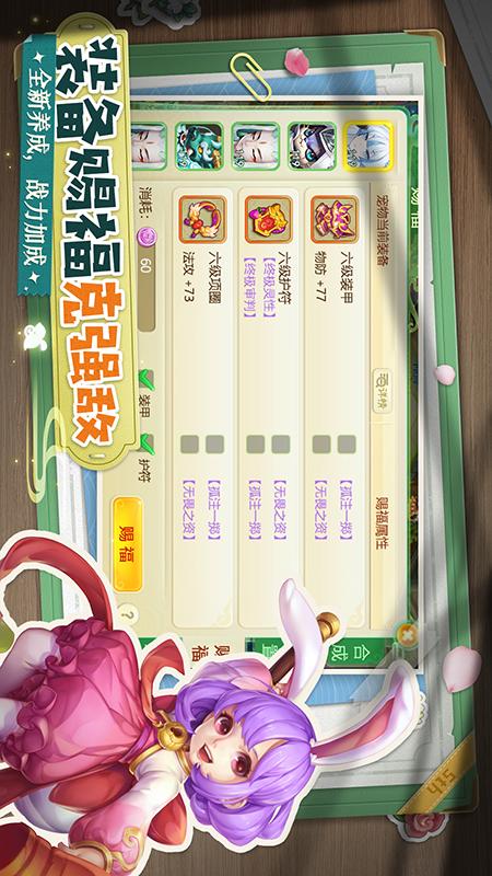 游戏首度将【恋爱养成】融入回合游戏,以丰富玩法打造浓情社交∶一键合体天女,解锁专属特效;个性化朋友圈互粉点赞,三界挚友随时互动;【世纪婚礼】9999朵玫瑰强势霸屏,豪华婚车巡游全服秀出恩爱……