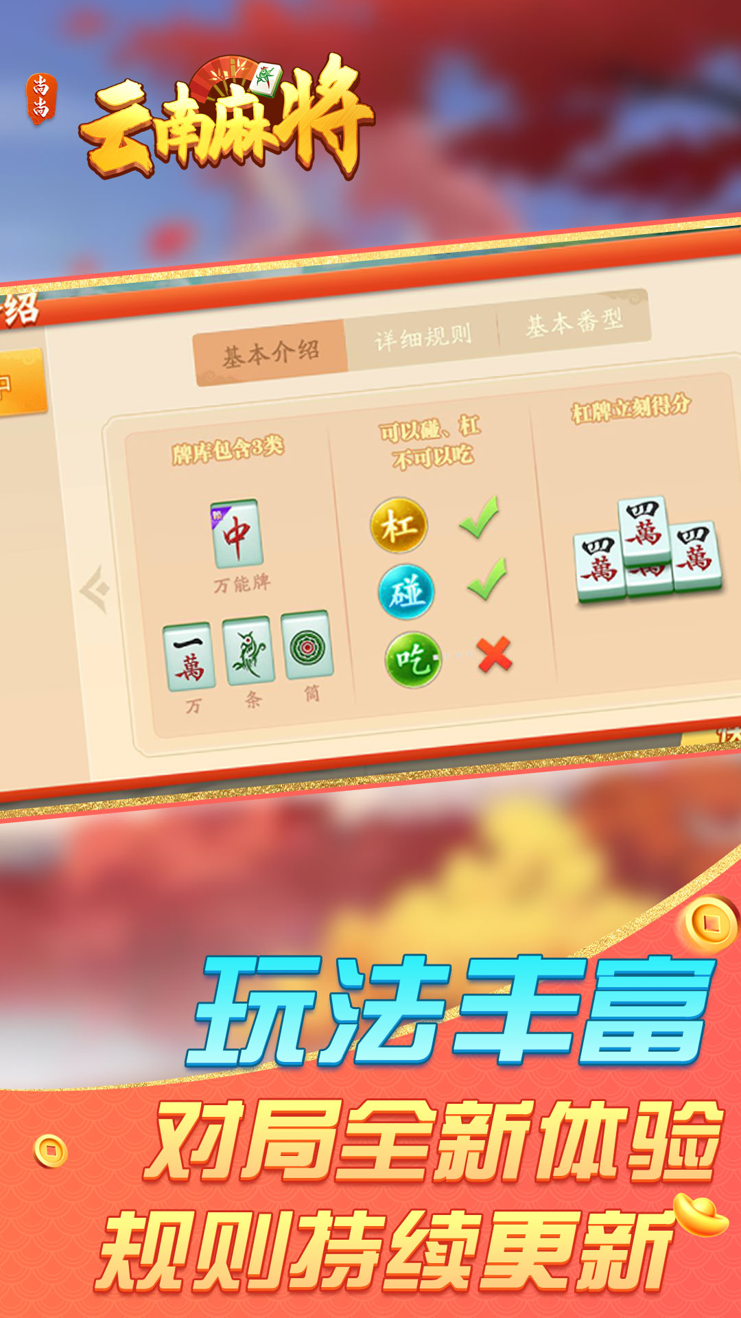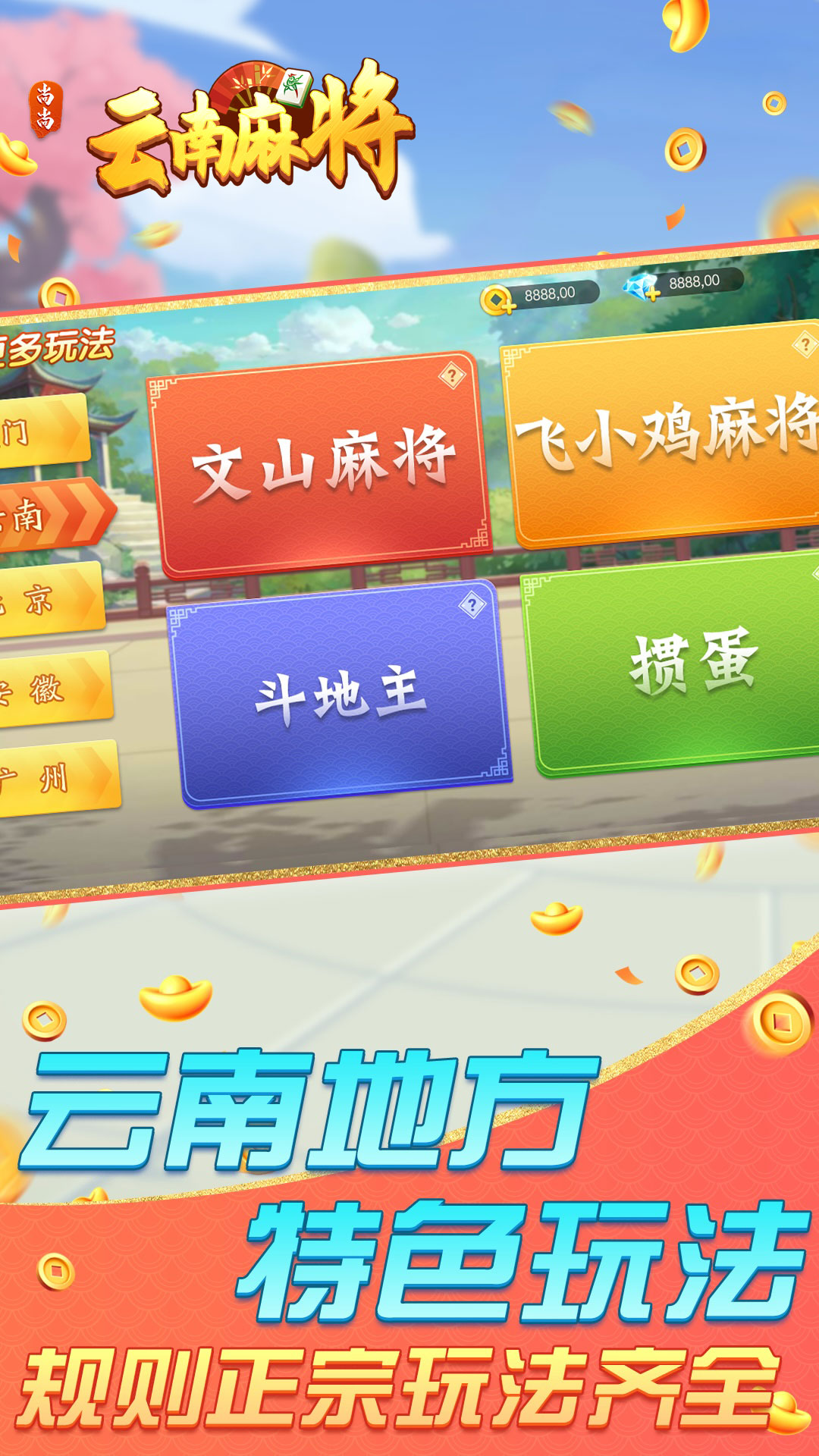 全国火热的云南麻将,包含血流红中、血流成河、血战到底等多种经典玩法。可以好友对战,也可全国匹配,快来体验吧。 【热门玩法 应有尽有】 斗地主、掼蛋、推倒胡、血流红中、血流成河、跑得快,热门玩法应有尽有。还有更多火热玩法即将推出。 【精美画质 福兔相伴】 酷炫特效,超萌牌宠,精美画面,让你体验丝滑般的麻将扑克体验 【云南麻将规则 玩法正宗】 飞小鸡麻将、文山麻将、斗地主。深入本地特色,玩法正宗齐全。