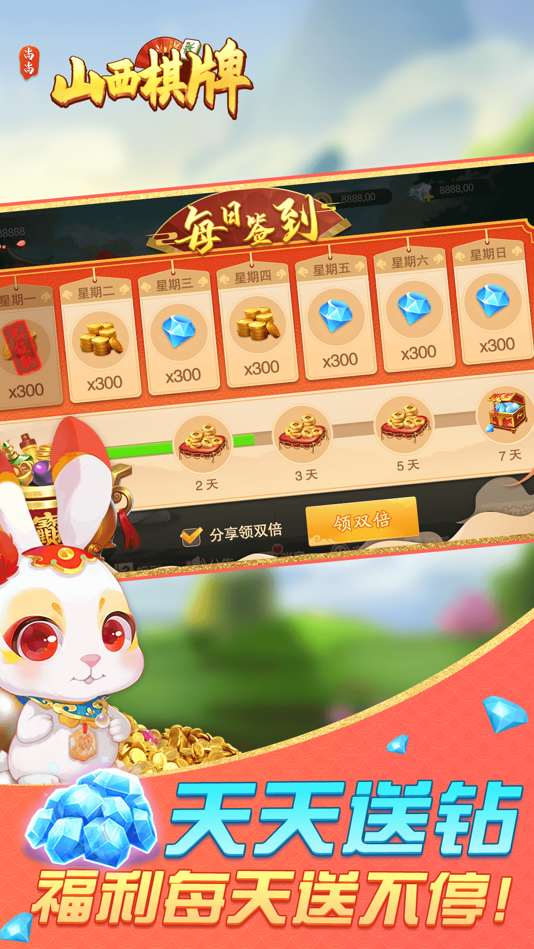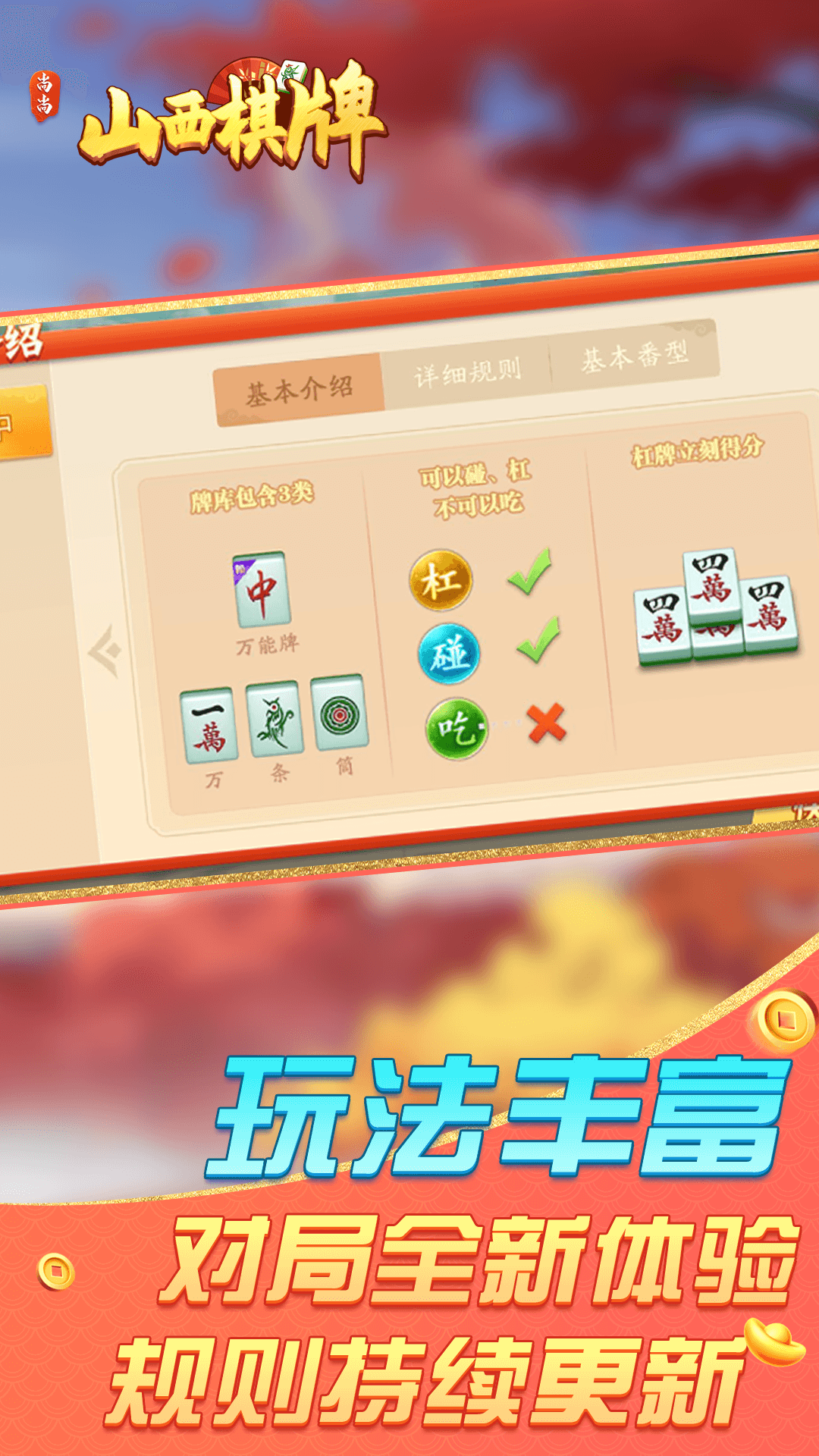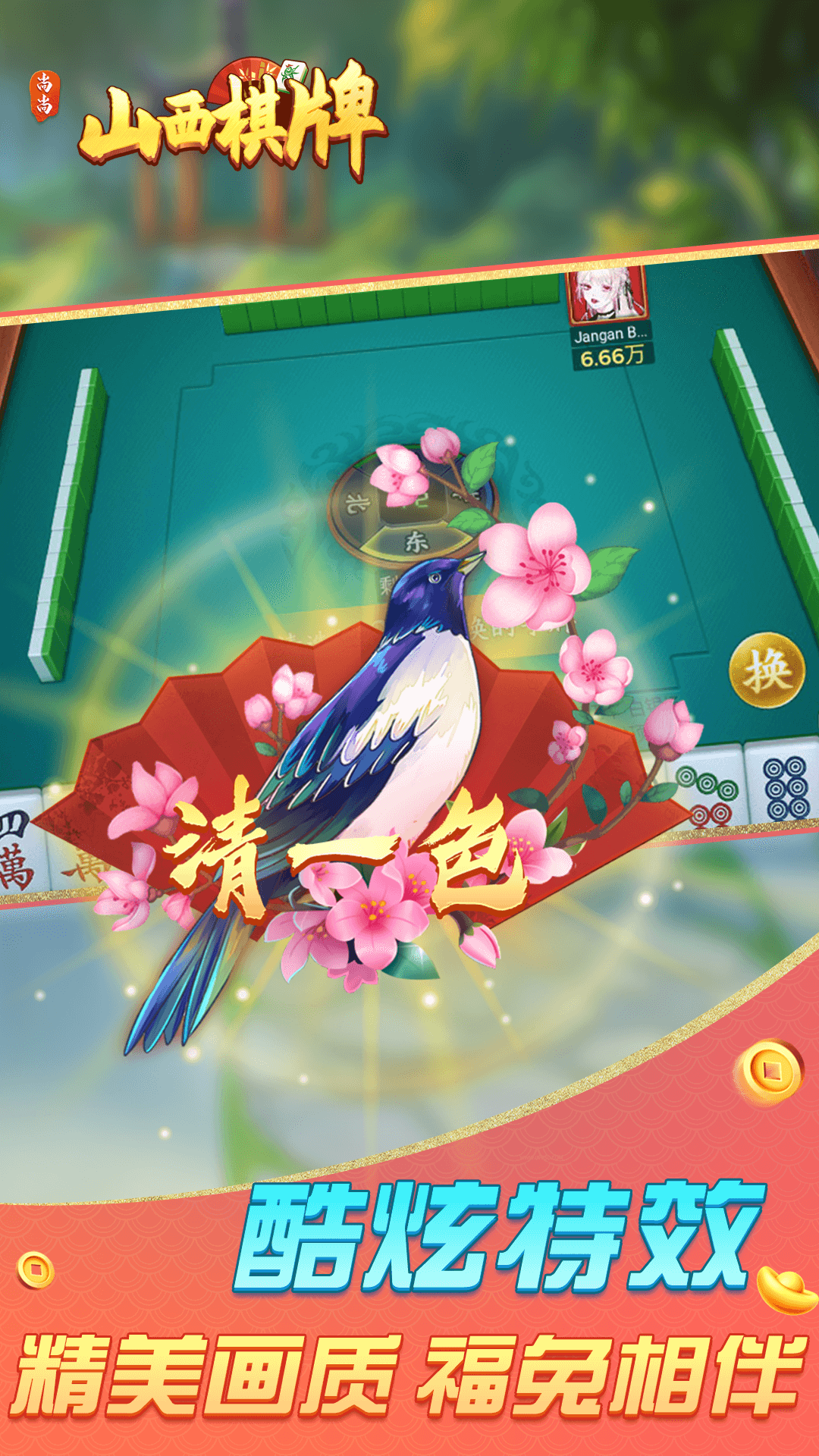 全国火热的山西棋牌,包含血流红中、血流成河、血战到底等多种经典玩法。可以好友对战,也可全国匹配,快来体验吧。 【热门玩法 应有尽有】 斗地主、掼蛋、推倒胡、血流红中、血流成河、跑得快,热门玩法应有尽有。还有更多火热玩法即将推出。 【精美画质 福兔相伴】 酷炫特效,超萌牌宠,精美画面,让你体验丝滑般的麻将扑克体验 【山西玩法 玩法正宗】 扣点麻将、石楼麻将、山西推倒胡。深入本地特色,玩法正宗齐全。