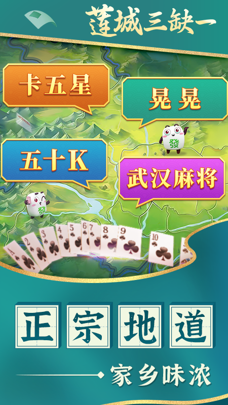 《莲城三缺一》集合了湖北各地麻将、扑克玩法,武汉麻将,血流红中,晃晃,斗地主,卡五星,真人2v2,打拱,五十K等多种玩法任你选择!