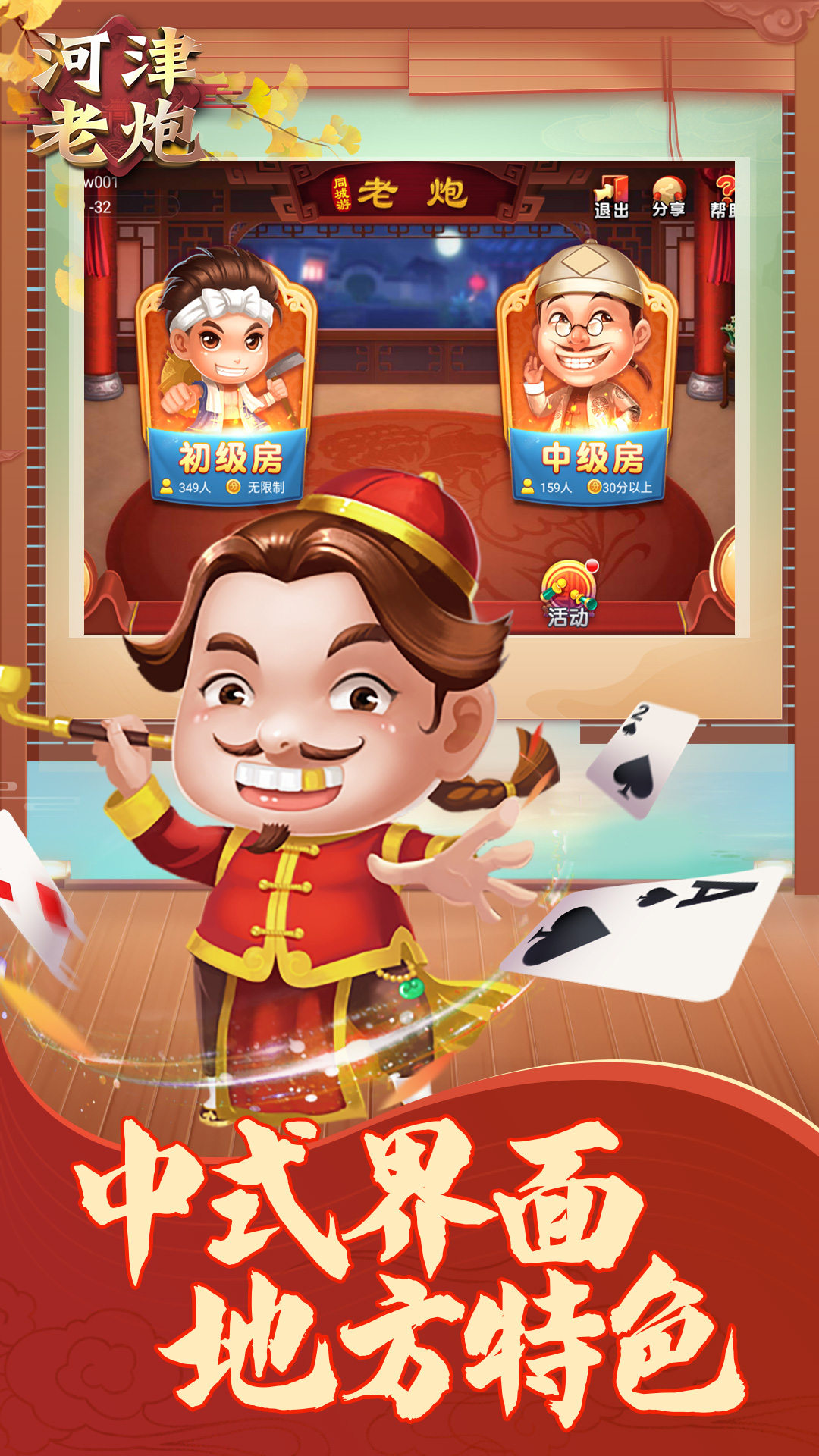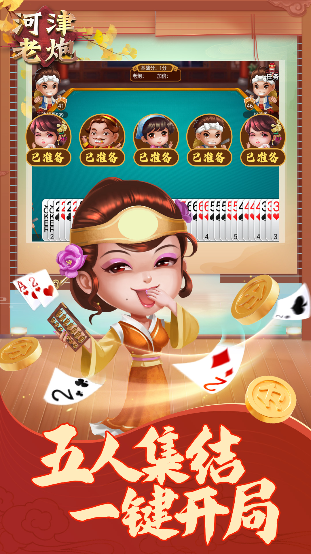 同城游老炮是山西省河津地区经典的扑克牌游戏玩法,是5个人4副牌进行的一种娱乐活动。打牌过程中,5个人分成两方进行对抗竞争,地主和老财是1组,其他3人1组(农民)。目的是想方设法将自己手头的牌打出去,争取较好的名次。