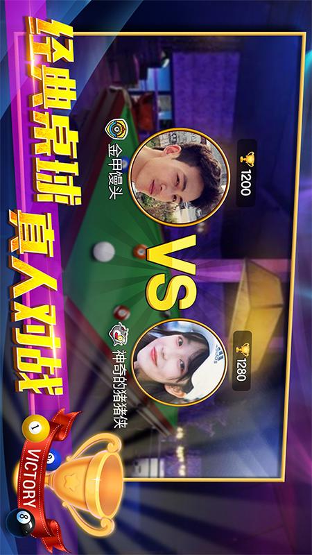 经典8球,竞技对战—PVP真人实时匹配、8人联赛随机分组,还原现实桌球玩法,简单流畅的操作,酷炫的动画特效给你绝佳的游戏体验。
