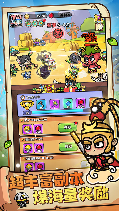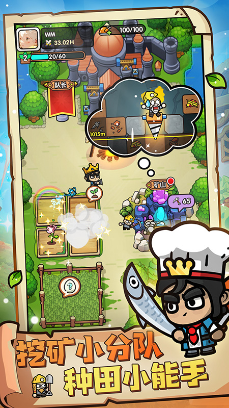 领主冲锋、金币矿洞、哥布林村庄、神灯试炼,每天都有满满惊喜和丰厚奖励等你来发现和探索!另外,在你奇幻冒险的闲暇时刻,还可以回到美丽的田园和矿山,体验休闲的种田和挖矿生活,世间大道千万种,挖矿种田样样行。耕种、收获、养殖、挖掘矿石,享受放松与自给自足的乐趣!