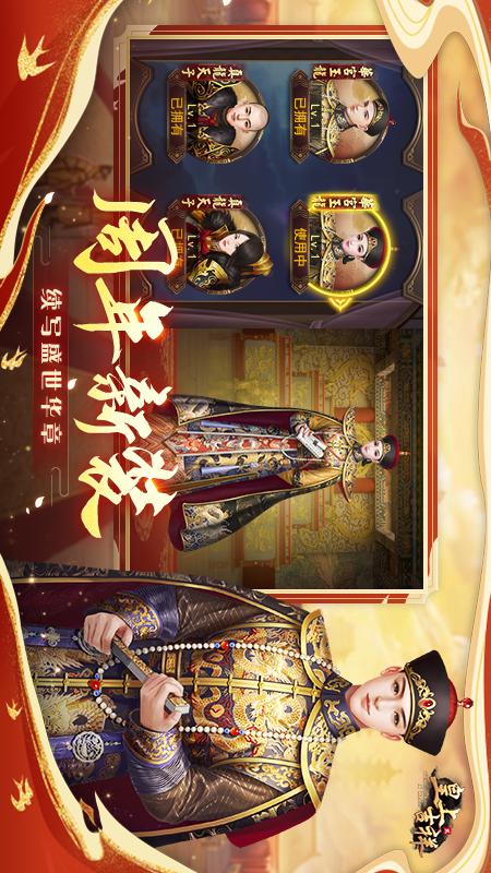 《皇上吉祥2》是一款以大清为历史背景作为皇帝游戏的角色扮演手机网游。玩家可以在游戏中穿越回清朝作为皇帝处理朝政、招揽大臣、培养心腹、邂逅美人、征战世界,成就帝王霸业,无论是爱国爱民的至上贤君,还是征服世界的强悍霸主,都能在这里完成心愿。
