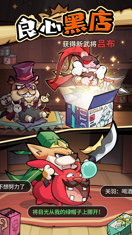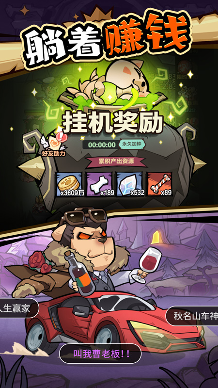 在这里没有复杂难懂的系统,只需搭配好你的狗将阵容,随手点点就能轻松闯关!挂机一晚更有各种资源满满,日常躺平也能战力飙升,上班摸鱼两不误!