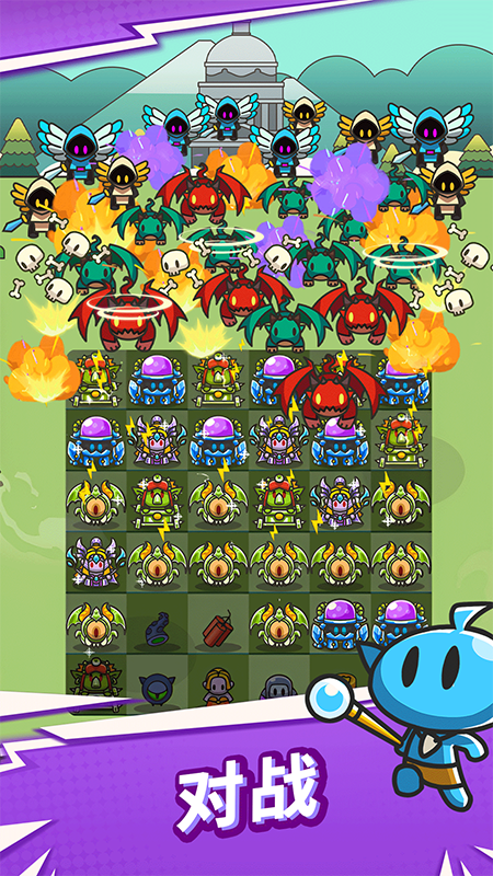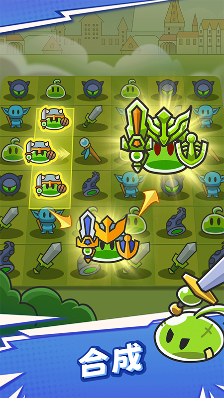 这是一款融合了合成、肉鸽、塔防、战斗等玩法的休闲游戏,通过不同角色的召唤和养成,不断提升自身战力,通过对不同角色的排兵布阵,来守卫领地,打击敌人,收获快感。