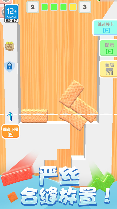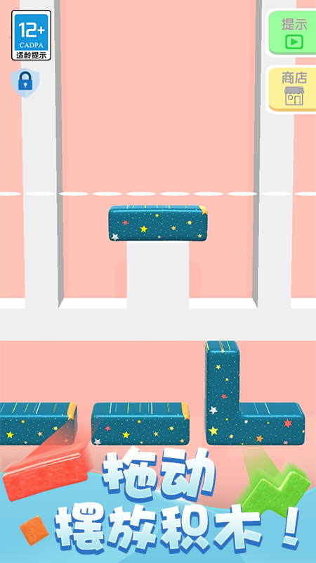 《开心贴贴乐》是一个魔性的益智解谜闯关游戏,在游戏中,会有不同形状的方块掉落,玩家需要将方块正确地摆放,让所有方块在摆放完成后位于标准线下即可通关。游戏中变化多样的地图和方块,考验玩家的空间想象能力和逻辑思考能力,让玩家感受解谜闯关的快乐。