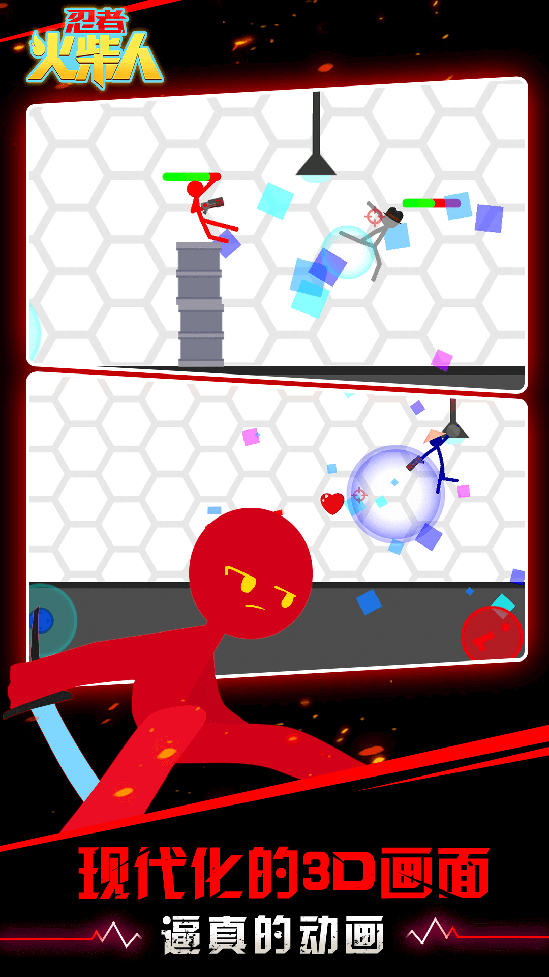《忍者火柴人》是一款玩法新颖的对战类手游,全新的游戏模式给你不一样的游戏体验,当热衷于忍术的火柴人遇到了高科技武器后就会一发不可收拾了,各种武器伴你作战,无论近战还是远程武器都能给你带来其乐无穷的游戏体验,各种惊险的地形设置,绝对能给你带来无限的乐趣,玩法更是令人抓狂,非常考验你的思维能力,展示你多变的身法来躲避敌人的各种攻击。本游戏使用强大引擎技术,成熟细节渲染,精致的地图、逼真场景,更细腻、更真实;关卡模式的大量挑战和排位模式的和真人挑战都等你来体验,还等什么?赶紧下载《忍者火柴人》进行挑战吧!