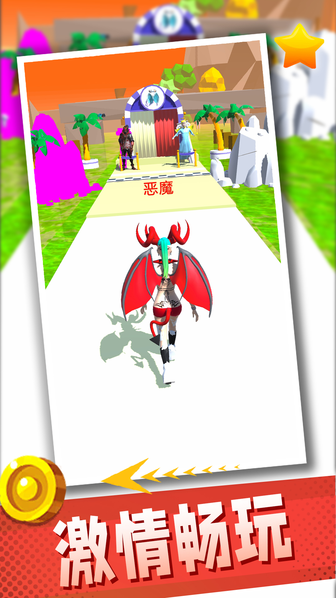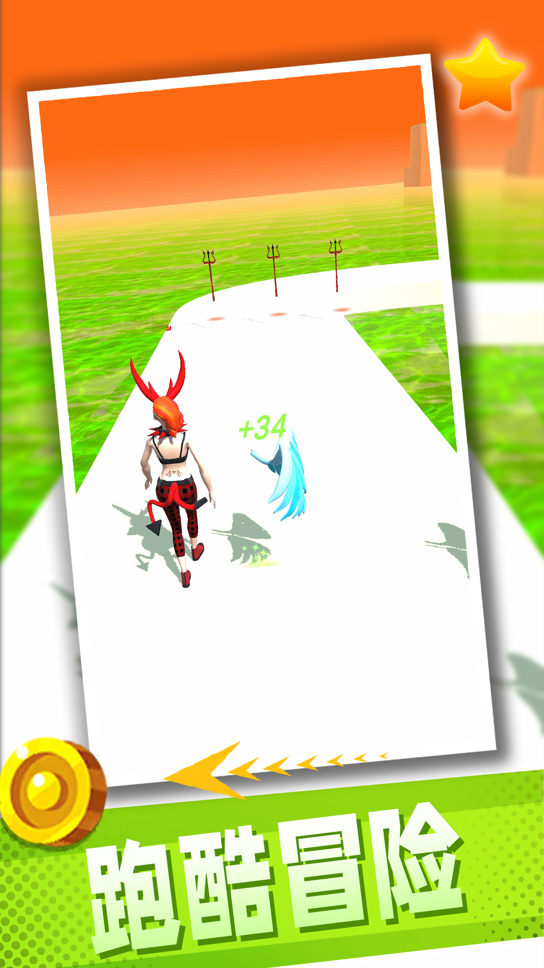 作为新颖的跑酷游戏,玩家需要控制卡通人收集各种道具进行跑酷闯关冒险,游戏中的道具都有标签,选择了天使标签的会将人物变成天使形象,选择恶魔标签的物品会变成恶魔的样子!