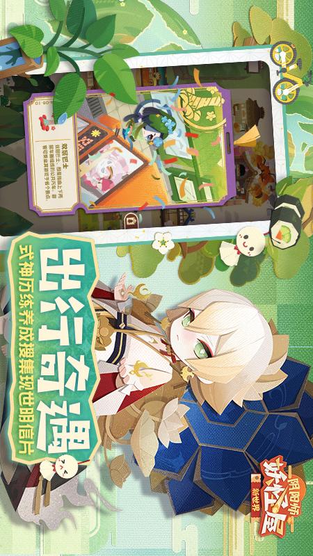 《阴阳师:妖怪屋》是基于阴阳师IP世界观衍生的全新轻养成休闲手游。 在奇妙的剪纸世界里,山兔、酒吞、茨木、萤草……玩家熟悉的式神们纷纷化身为萌态可掬又性格各异的小妖怪,在庭院里度过轻松欢乐的日常生活。5月29日开启全新版本新世界,全式神无需氪金,出行相遇邀约即可加入庭院,更加自由的庭院编辑和建造,定制个性化庭院与式神一起其乐融融,轻松休闲的生活。携带物资派遣式神前往现世出行历练提升能力,邀约新式神,收集现世明信片。前往万象之原大世界,与朋友组建阴阳寮一起共建。