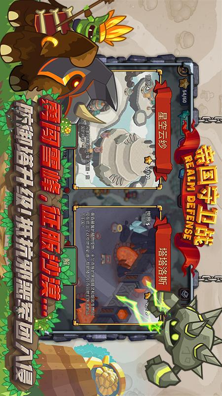 《帝国守卫战 (Realm Defense)》一款由塔防游戏爱好者为真爱粉打造的动作塔防,海外上线后曾多次获得全球推荐! 故事发生在阿特拉世界,由兽人,哥布林,胡狼族,巫师等多种怪物组成的敌军控制了傲落王国、峡湾圣地、旭风沙漠等多个领地。运筹防御塔和能量物品,招募拥有神秘力量的英雄,定制你的极致策略,帮助手无寸铁的村民,夺回能量资源,推翻恶魔的统治,恢复阿特拉世界的秩序,完成你的使命!