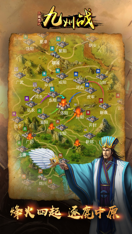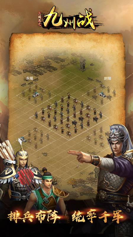《三国志之九州战》是一款以三国时代文化为背景,精美细致的画面风格、真实细腻的游戏场景、恢宏壮阔的战争场面,真实还原三国地图和历史名将,实现十万部队同屏作战,结合模拟建设与战斗策略为一体的策略类手机网络游戏。游戏沿用了SLG经典回合制的战斗模式,拥有丰富多样的策略玩法。游戏中排兵布阵,不同的战斗策略,三大兵种相生相克,武将强大的技能释放都将会左右整个战局。玩家将扮演九州之中的一员大将,通过游戏中的城池建设,武将培养,城池战斗,城池占领等多个玩法系统,不断壮大自己的实力,运用策略智谋与其它玩家进行较量,让你在尽享游戏激情快感的同时,亲历到前所未有的古代战争场面,在乱世中大展宏图,辅佐帝王成就春秋霸业。