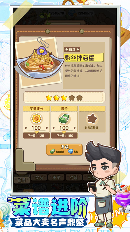 在布置温馨、氛围舒适的私房菜餐厅里,我们将一起度过美好的经营模拟时光,您需要通过提升装修环境、招聘升级员工、合成高级记忆、回想升级菜谱等帮助餐厅升级,一步走向厨神巅峰。此外,丰富多彩的游戏活动将带您体验不同的餐厅风格,魔法古堡、梦幻甜品屋、森系都市...二楼还有萌萌哒小精灵,让馆长们体验养成探索的快乐~重获厨神的称号注定不是那么容易,但是相信馆长们一定可以一路晋级,最终找回丢失的记忆,重回巅峰!