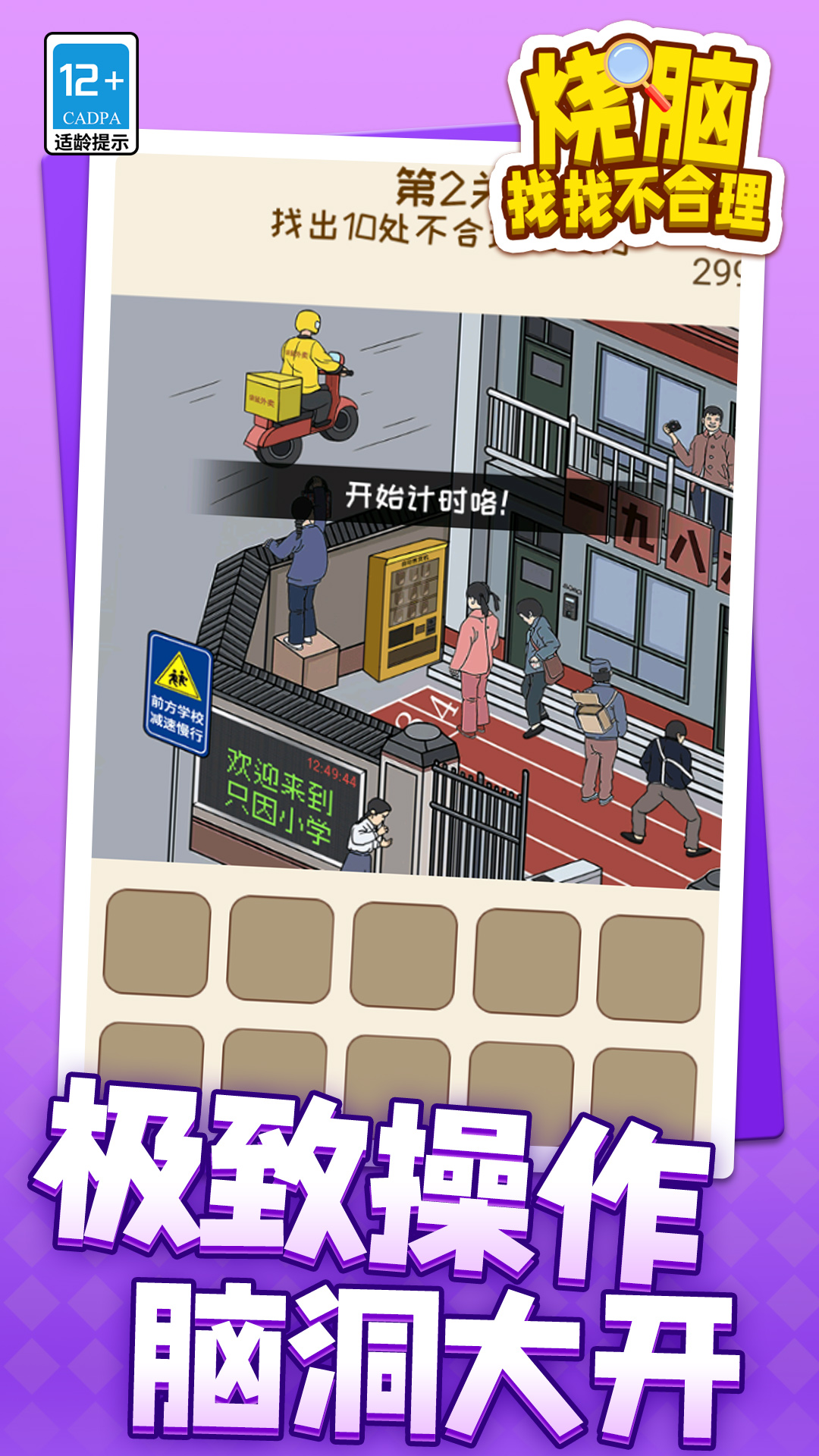 《烧脑找找不合理》是一款休闲益智类游戏。游戏里,玩家需要通过不同的方式,去寻找游戏中隐藏的道具物品,并通过来使用这些物品来帮助通关,考验玩家们的脑洞与眼力哦,快来一起加入这款欢乐的找茬游戏吧!
