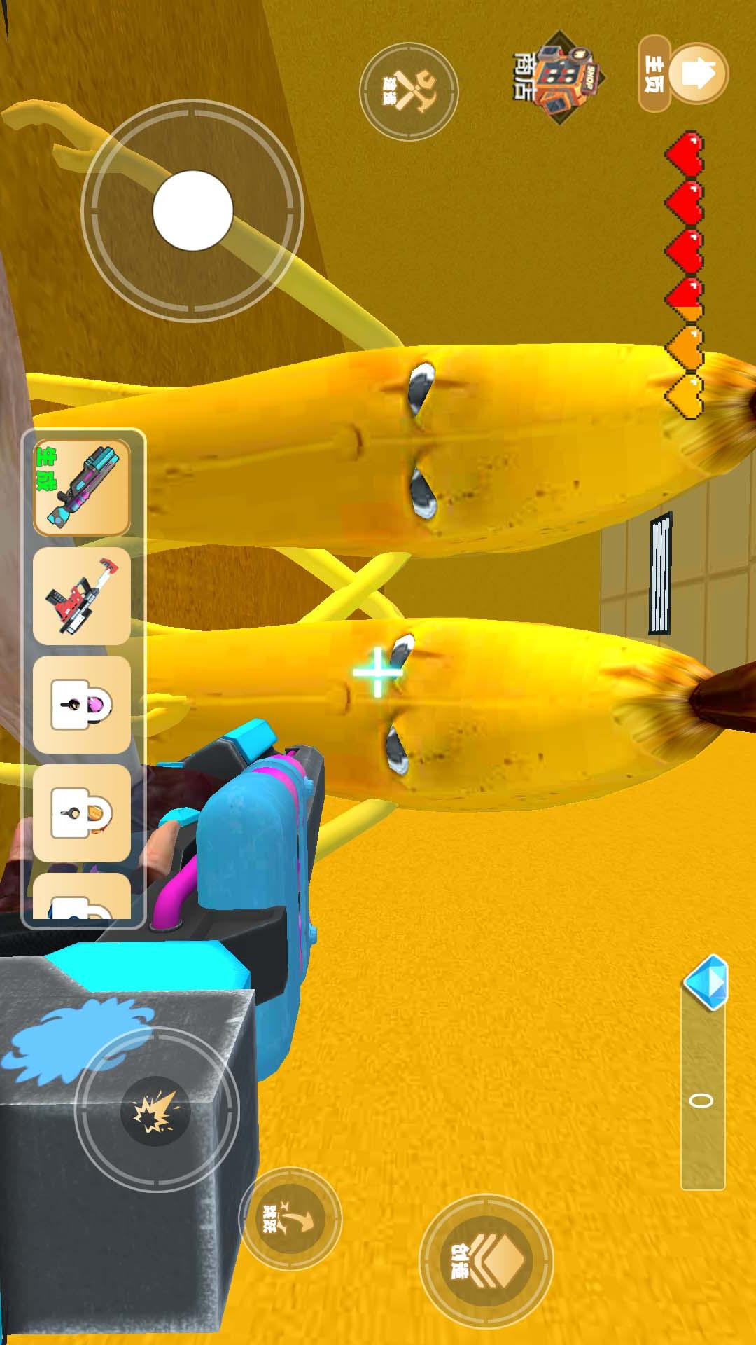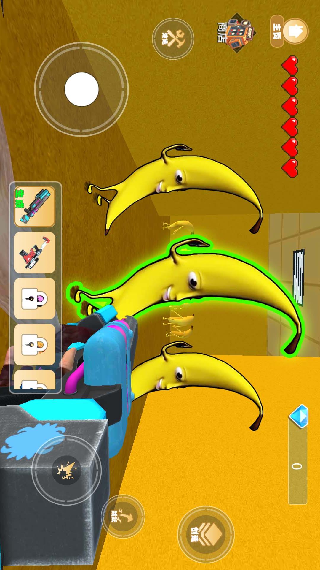《逃离大香蕉》这是一款动作冒险类小游戏,像素世界大香蕉冒险生存,使用TNT和武器破坏和击败大香蕉,获得游戏内钻石奖励,解锁更强大的武器。