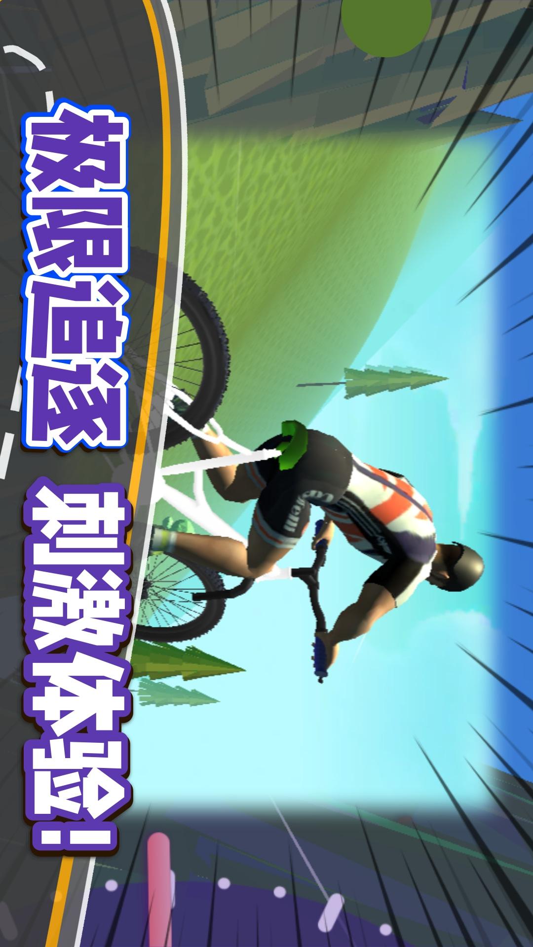 游戏中玩家需要操控自行车手参加比赛,在比赛中躲避各种障碍物并且收集金币,同时可以利用赛道中的一些踏板提升速度,最后到达终点,获得冠军。