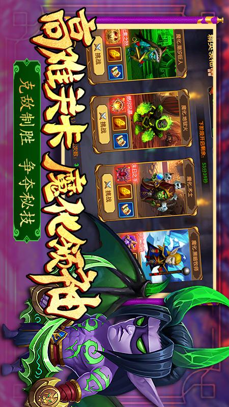 原汁原味的游戏剧情,超高还原艾泽拉斯大陆,场景、地图均取材于战役或者篇章的故事,让玩家在体验游戏的同时,追忆当年征战杀伐的快感!休闲养肝,轻松放置挂机获得海量资源,在游戏中你将能收集到多种经典英雄卡牌和数不清的世界探险,快率领你的小队加入全新征程,开启属于你的传说吧!
