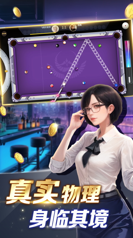 【开心台球】等你来战!在这里,你可以体验到不一样的台球游戏,感受到台球的魅力。你以在这里挑战自己,提升自己的技能,和朋友们一起享受台球的乐趣。你还可以在这里经营自己的球室,打造出属于自己的台球帝国。我们期待你的加入,一起来享受这场华丽的台球之战吧!