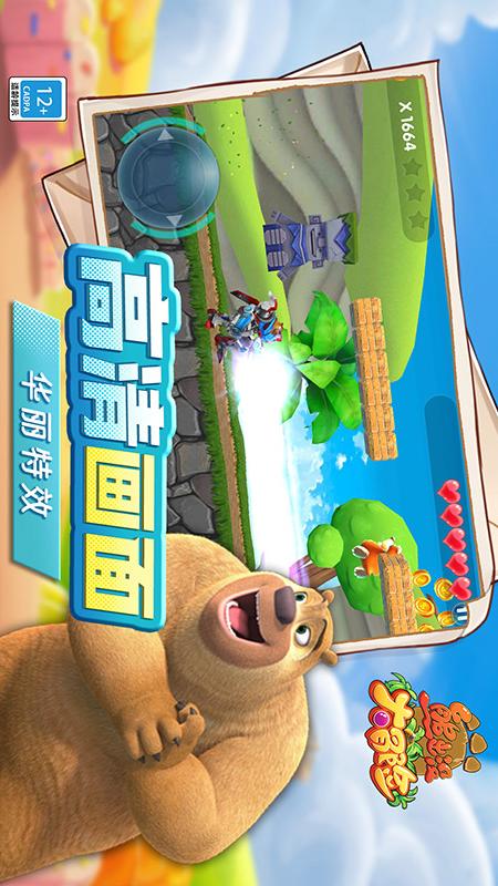 小伙伴们,快来和熊大一起参与丛林冒险吧!《熊出没》动画官方正版授权,3D横版动作冒险游戏《熊出没大冒险》全新来袭!