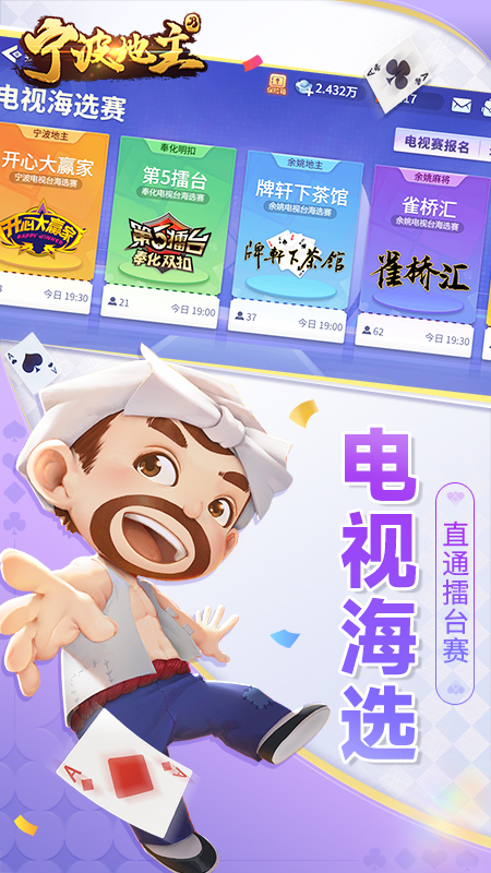 阿拉宁波人自己的游戏! 甬城百万玩家,开心斗地主 ******福利满满****** 游戏领奖券,花样实物随心换,话费秒到账 ******原汁原味****** 四人斗地主,地方配音,还原纯正的热血对局 ******电视赛事****** 高手争霸,公平竞技,冠军直通电视赛