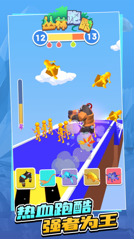 《丛林跑酷》是一款火爆的休闲跑酷类游戏。游戏中采用山地、泳池、悬崖等多种极具挑战性的游戏画面,给予玩家超真实的场景体验。 玩家在游戏中需操控各种变异恐龙来进行闯关,根据不同的地形选择变异的恐龙来通过关卡完成挑战。魔性搞笑的闯关过程以及刺激的趣味挑战,欢乐无极限!