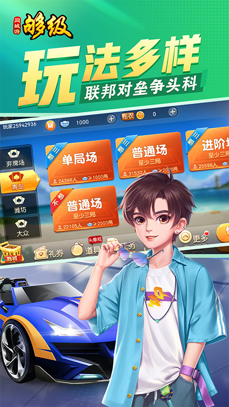 "同城游够级包含青岛、潍坊玩法、大王二杀一玩法,规则正宗,体验流畅,画面生动有趣,是够级爱好者交流的好平台。 【玩法经典】 同城游够级玩法经典,憋3、不憋3、3个2杀大王、大王2杀1玩法大集合,你喜欢的都在这里! 【官腔配音】 同城游够级采用山东搞笑官腔配音,嬉笑怒骂,大杀四方! 【秒速开局】 同城游够级众多高手玩家同时在线,高手云集,快速配桌,对局无需等! 【背景多变】 同城游够级一键更换背景,给你更舒适的游戏体验!
