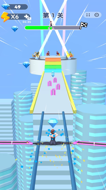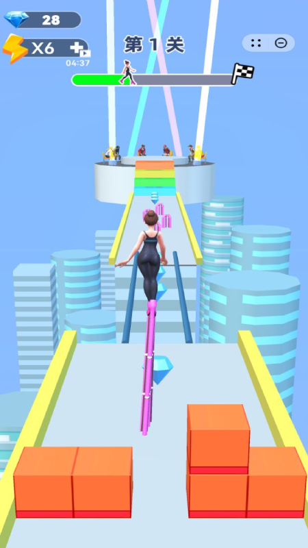 这是一款画面流畅,操作简单,玩法轻松的益智跑酷类游戏,在游戏中,会有一个女王脚踩高跟鞋向前行走,过程中会有金币、有增高跟、有方块障碍、独木桥和隔空杠杆等,画面会一直往前,直至走向终点登上舞台展示。