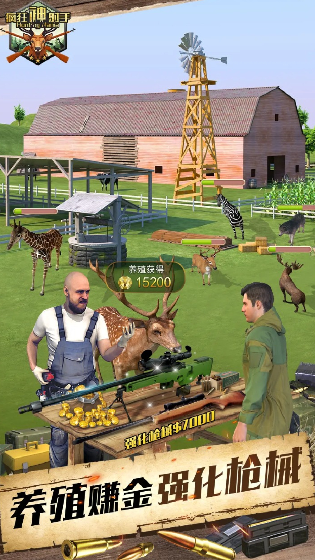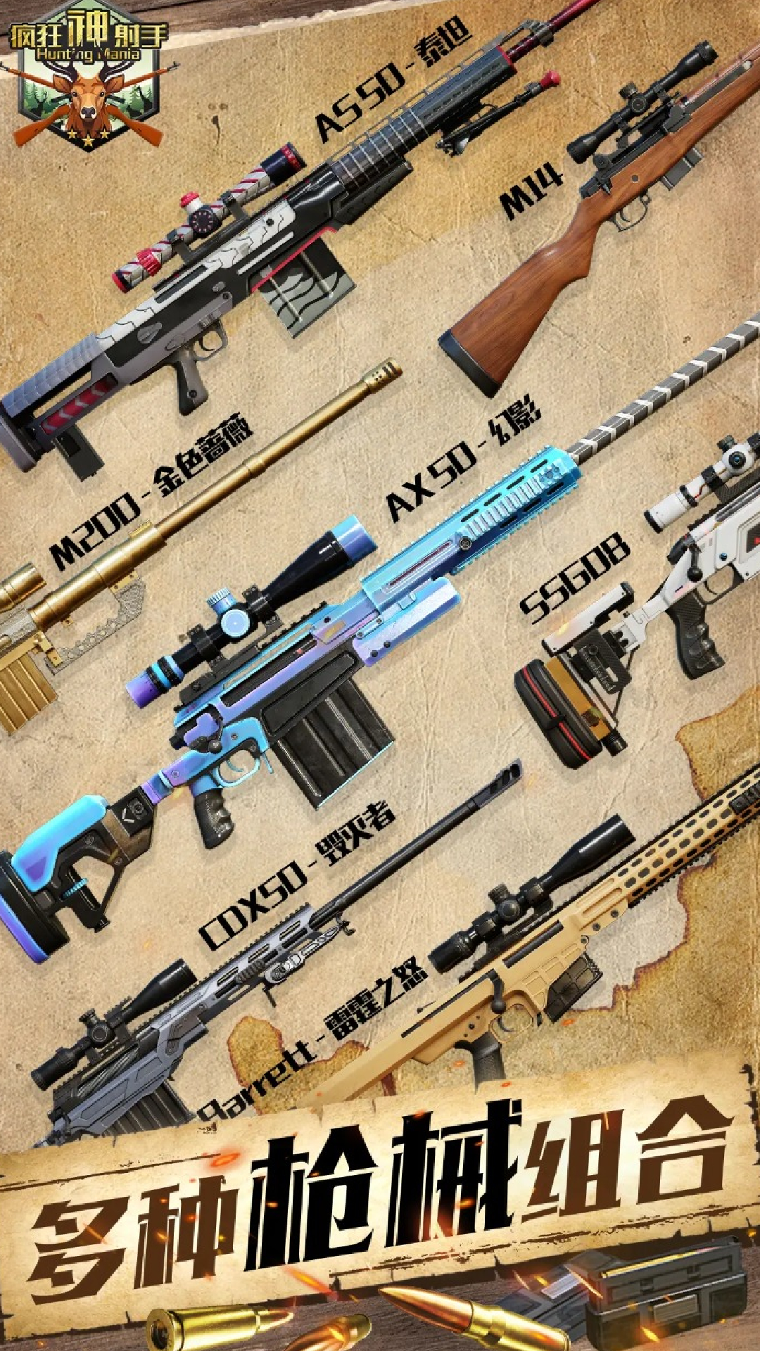 疯狂神射手是一款由北京赫德时代科技有限公司开发的射击类手游。游戏以狩猎为主题,玩家将扮演一名精英猎手,在广阔的荒野中展开狩猎之旅。