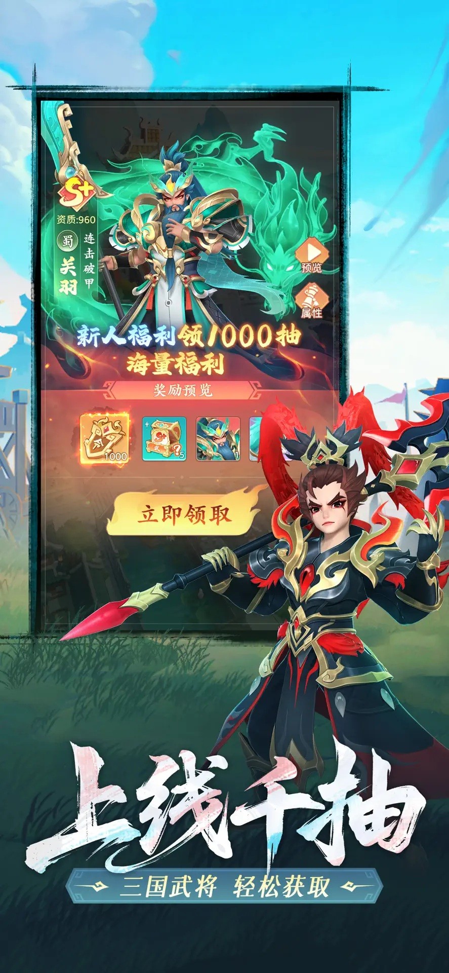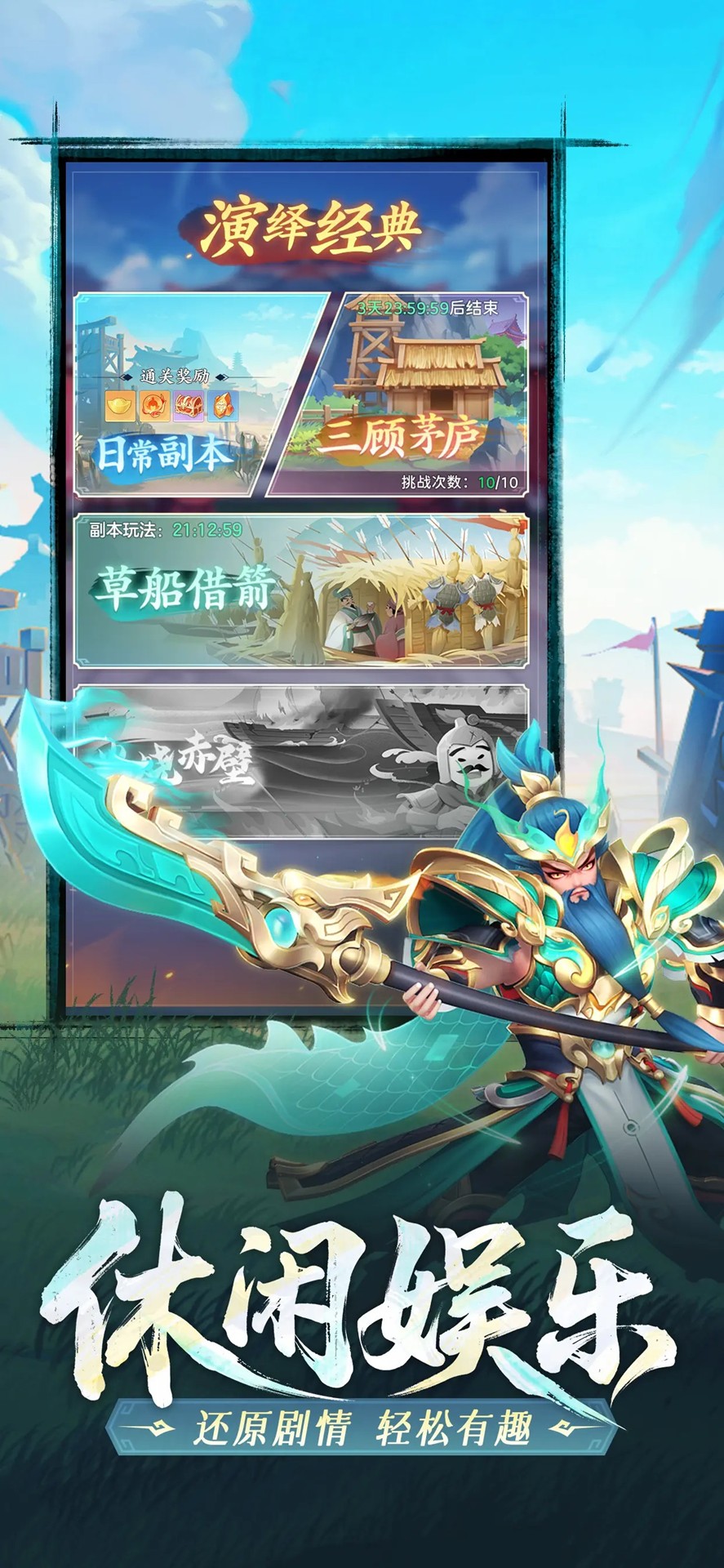 《三国大冒险》是一款新国风三国卡牌手游!玩家将化身将星临世的主公,集结耳熟能详的三国名将,过关斩将、收复城池,成就一统三国的霸业!游戏中,你可以招募并养成经典武将,打造专属强力阵容,同时沉浸式重温经典三国战役。轻松休闲的放置挂机玩法,让你推图攻城即可自动获取养成资源,告别爆肝零氪金!福利超丰厚:上线即送经典名将与海量抽卡券,战力飙升,爽感倍儿足!